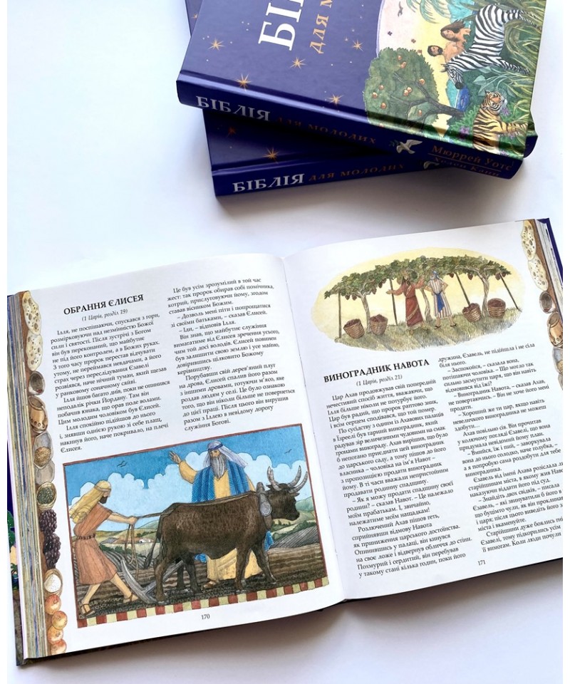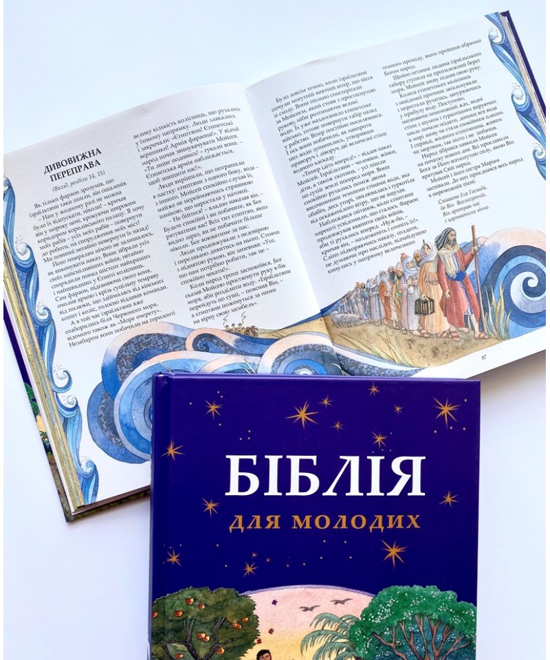 Біблія для молодих вичерпно висвітлює ключові біблійні теми та історії, відображаючи різноманітність Святого Письма, оригінальність його образного стилю. Чудові ілюстрації та майстерне оформлення доповнюють та додають сенсу біблійним історіям, додаючи ваги та розуміння прочитаному.