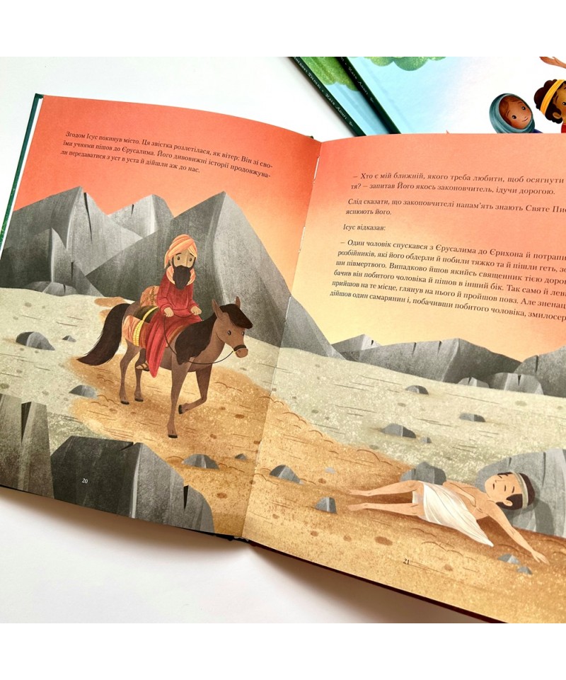 Разом із двома відважними й допитливими дітлахами Йоаном і Анною ви відкриєте для себе найгарніші притчі Ісуса. Це чудова, прекрасно ілюстрована історія, яку, поза сумнівом, полюблять ваші діти.