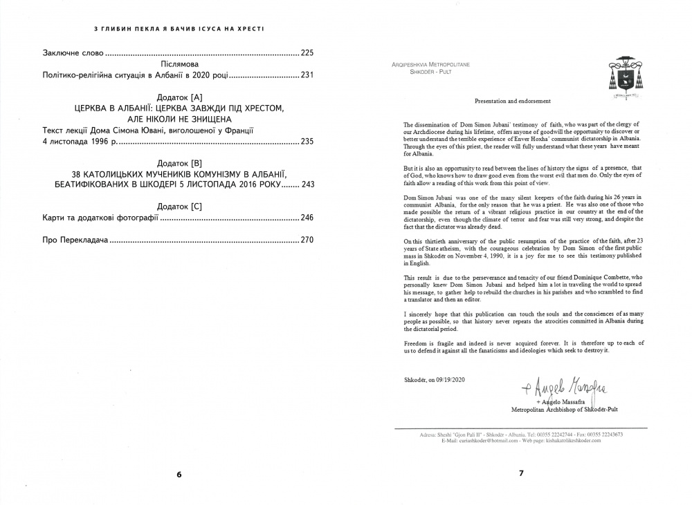Дом Сімон Ювані був найвідомішим албанським священником свого часу як вдома, так і за кордоном. Його переслідували та кинули до в’язниці за комуністичного режиму в Албанії з єдиної причини – уділення Тайни Хрещення. Ця книга має за мету торкнутися душ та сумління якомога більшої кількості людей, щоб в історії не повторилися ті жорстокості, які були скоєні в Албанії за часів комуністичної диктатури. А також привід прочитати між рядками історії ознаки присутності Бога – який знає, як зробити добро зі зла, що чинять люди. Бог завоював і звільнив країну від диктатури священничими руками Дома Сімона Ювані.