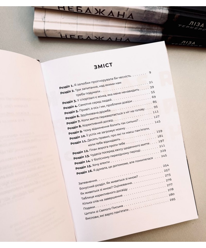 У цій книжці Ліза Теркерст розповідає про глибоко особистий досвід відкинення – від епізоду уявної зневаги з боку ідеальної жінки у спортзалі до болючих дитячих спогадів про батька, який її покинув. Ліза досліджує причини відкинення, а також його здатність отруювати стосунки зі собою і з оточенням, а насамперед – стосунки з Богом.