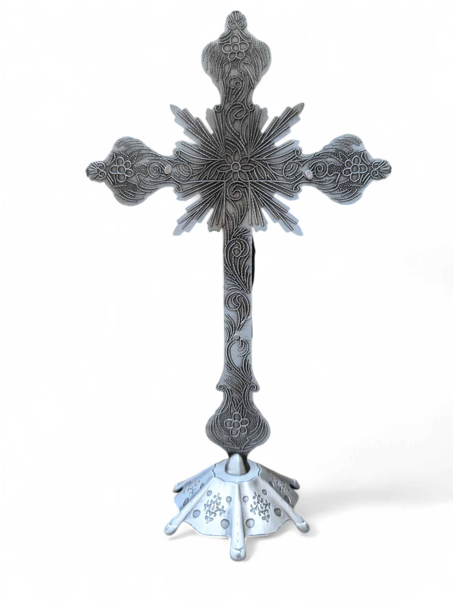 Настільний хрест із розп’яттям — це глибокий символ віри, виготовлений із якісного металу, що поєднує в собі довговічність, естетику та духовну силу. Ідеально підходить для дому, офісу, молитовної кімнати чи як подарунок.