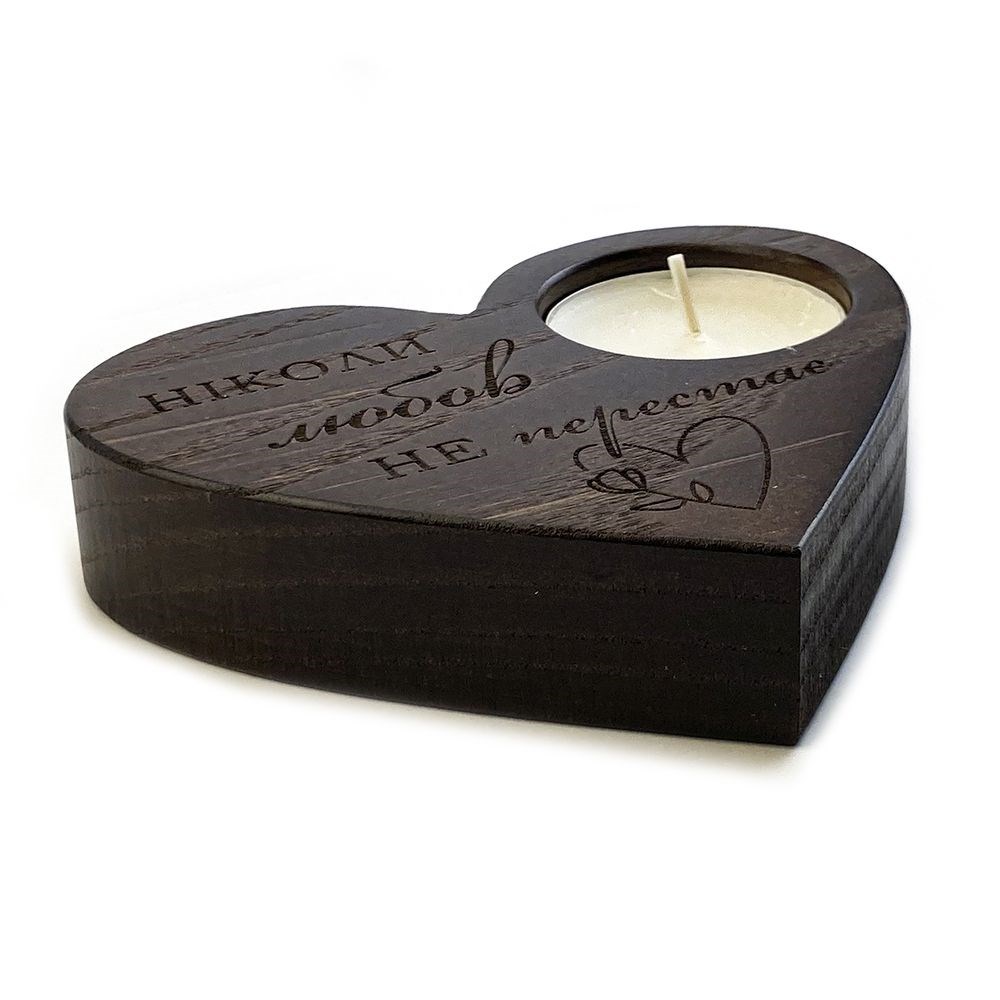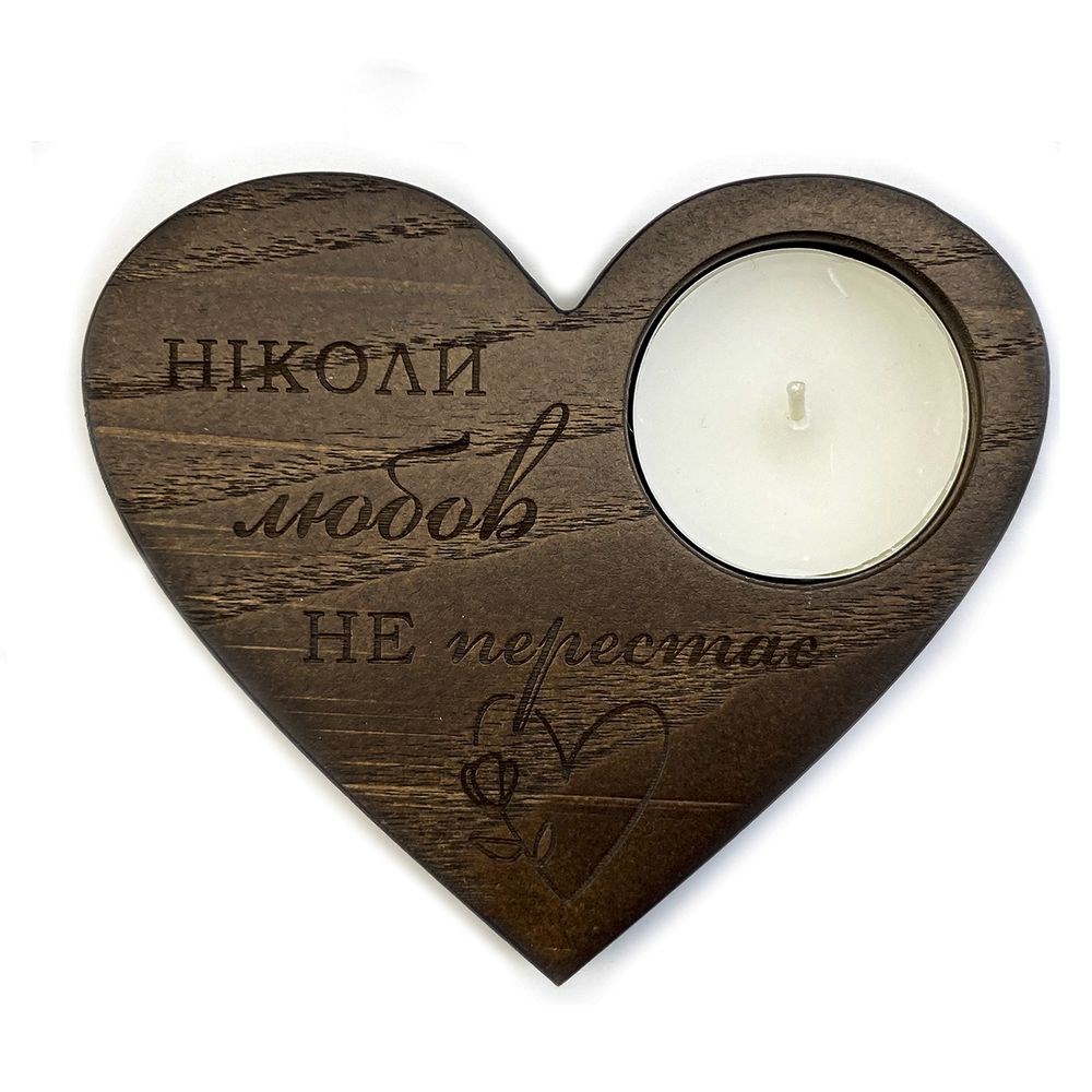 Підсвічник у формі серця гравійований коричневий "Ніколи любов не перестає"