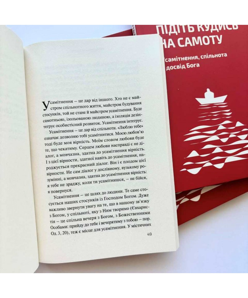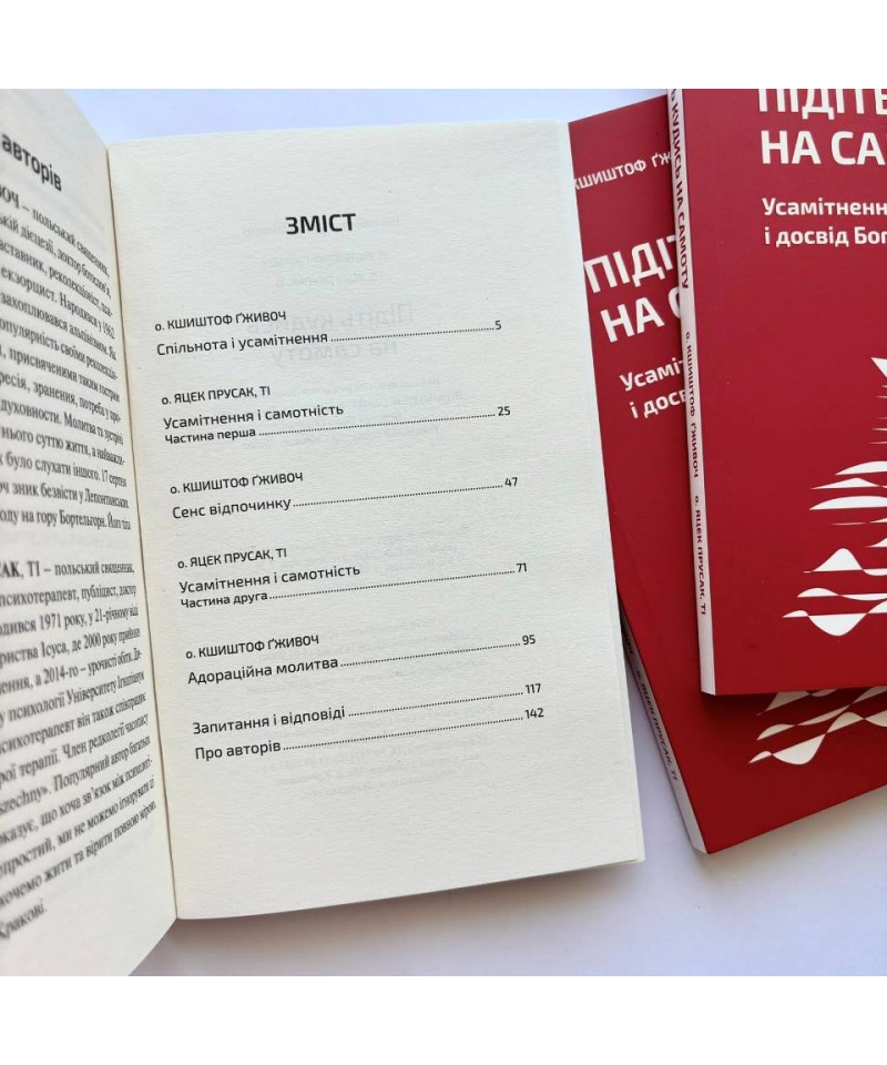 Отець Кшиштоф Ґживоч та отець Яцек Прусак запрошують до роздумів на тему зрілости, молитви та усамітнення, що для багатьох із нас є хлібом насущним. Глибокі богословські та психологічні знання авторів, а також доступна форма викладу роблять книжку корисною для кожного, хто хоче поглибити свої стосунки з Богом, собою та іншими людьми. Для кожного, хто хоче знайти Бога навіть у тому, що в його житті важке і сповнене страху.
