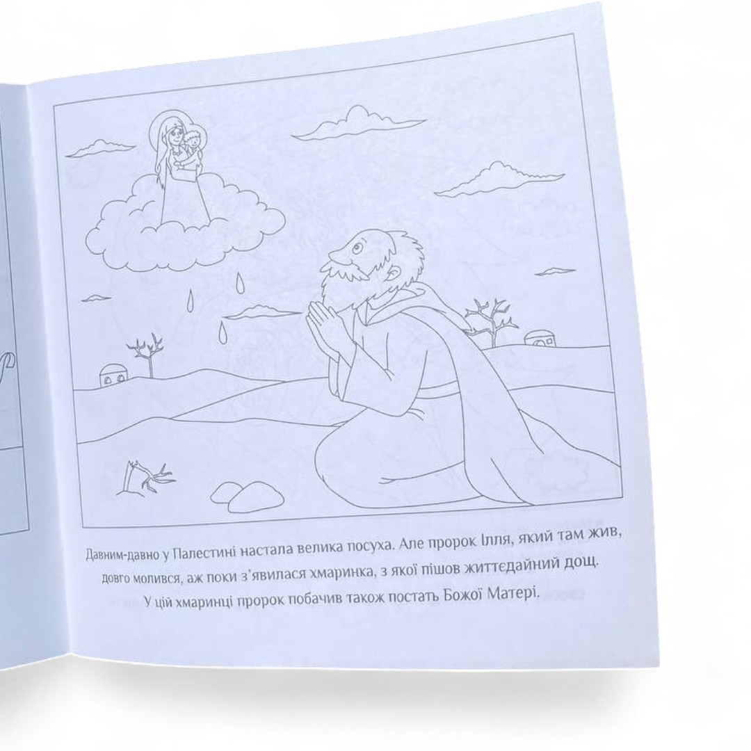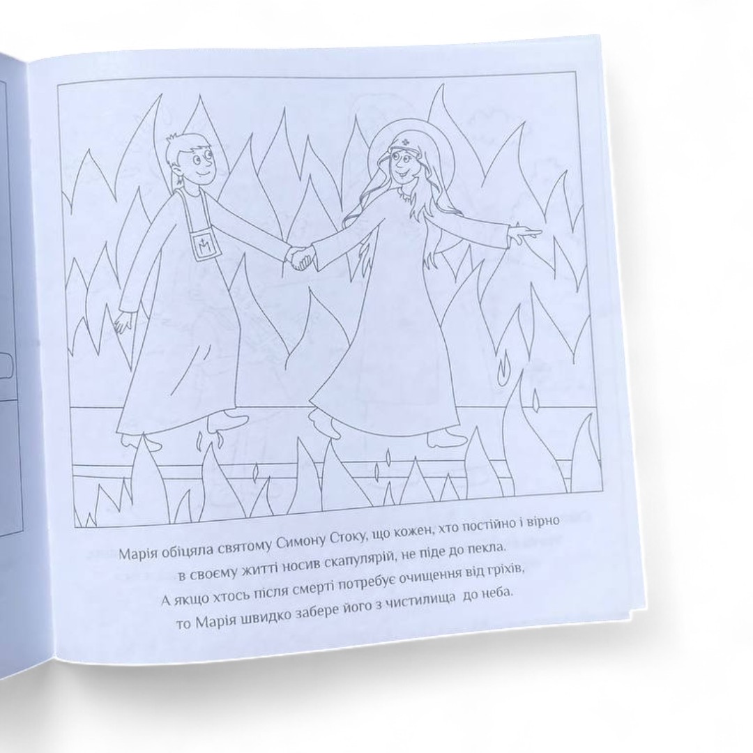 Розмальовка наближає нас до постаті Матері Божої Святого Скапулярію. Гарні ілюстрації та короткі тести допоможуть наймолодшим пізнати історію шати Марії – Святого Скапулярію.