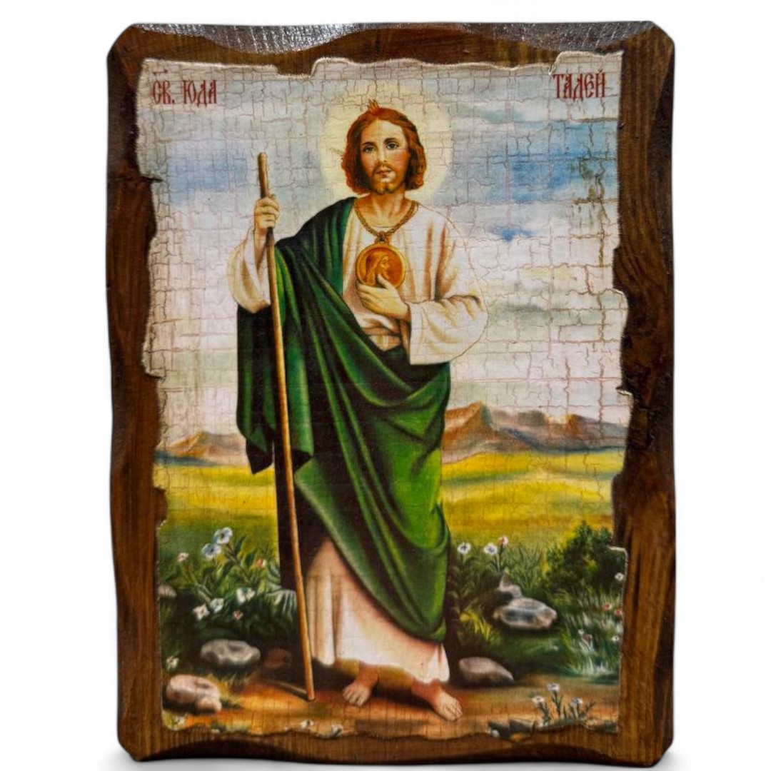 Святий Юда Тадей — апостол, близький учень Ісуса Христа, якого вважають покровителем у безнадійних та складних обставинах. Його ікона є джерелом надії, духовної підтримки та сили для тих, хто звертається до нього в молитві у найважчі моменти життя.