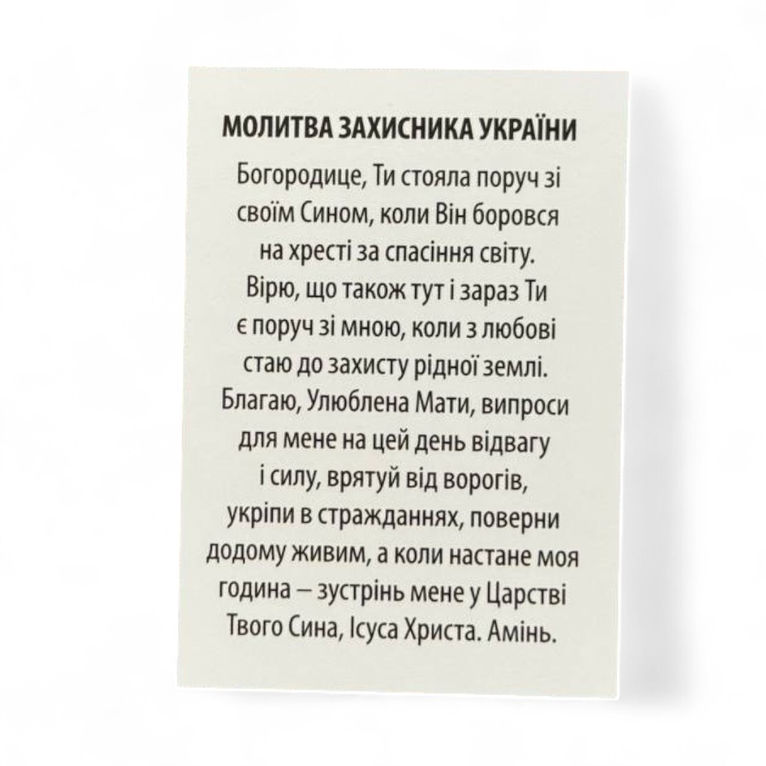 З однієї сторони образ Матері Божої Бердичівської, з іншої - молитва захисника України.