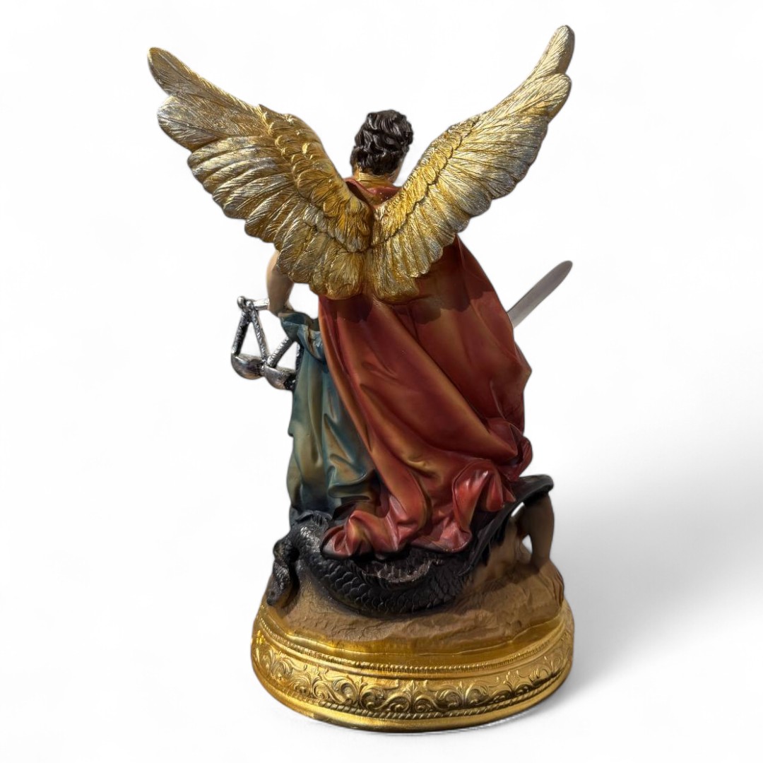 Фігура Архангела Михаїла зображує небесного воєначальника в момент перемоги над злом — з мечем у руці та драконом (сатаною) під ногами. Це потужний символ захисту, духовної сили та Божої справедливості.