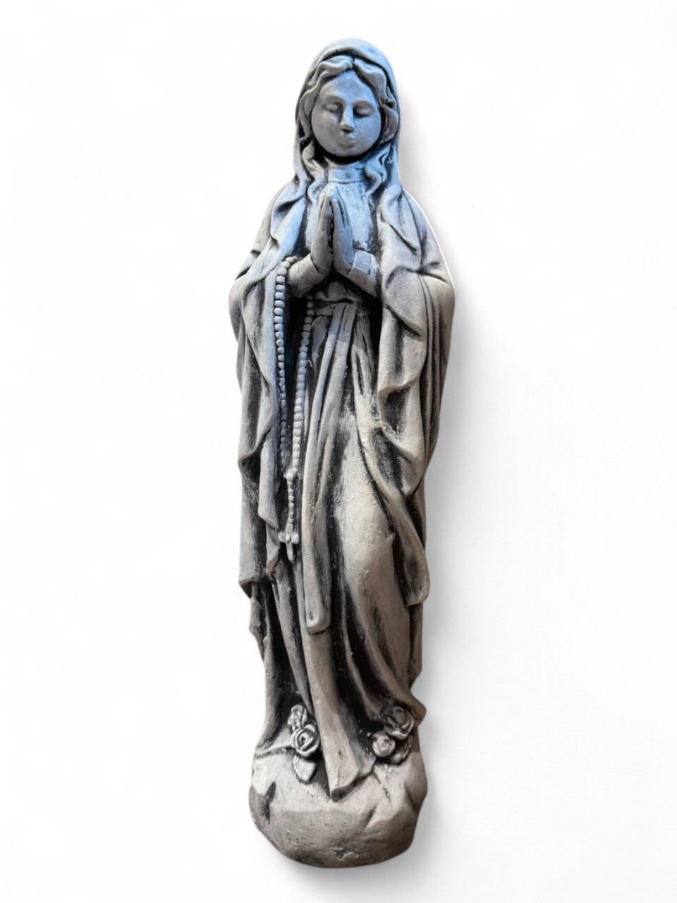 Велична та благородна бетонна фігура Матері Божої, яка тримає розарій, стане духовним центром вашого подвір’я, саду чи молитовного куточка. Образ Богородиці з розарієм символізує покору, молитву та материнське заступництво.