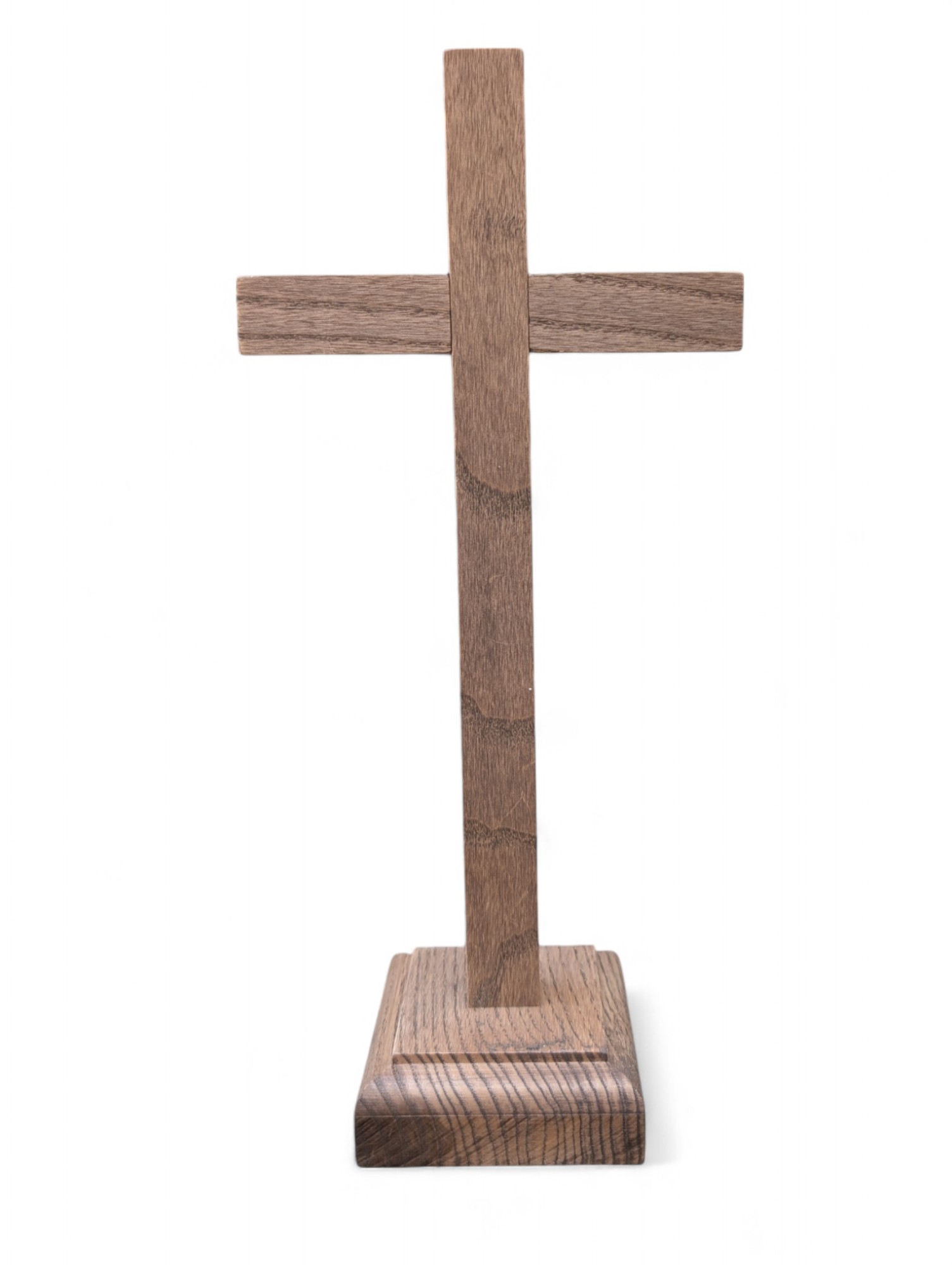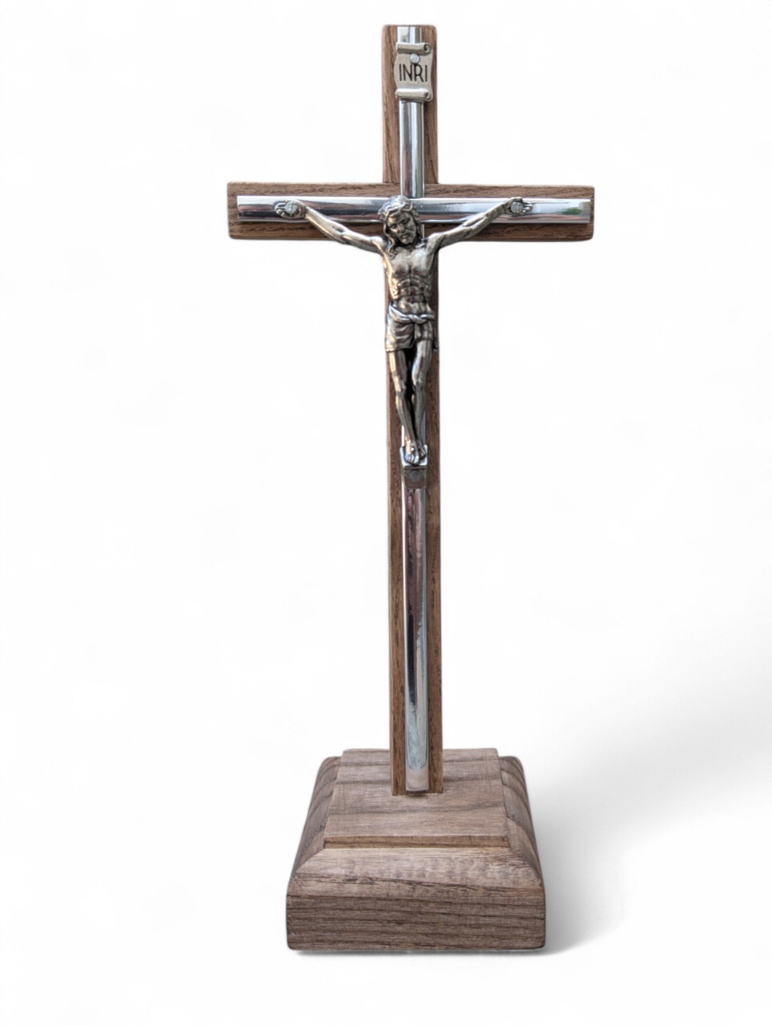 Урочистий дерев’яний хрест із металевим розп’яттям — призначений для встановлення на престолі в храмі або для використання в каплиці чи молитовному куточку. Виготовлений із натурального дерева, з увагою до деталей та благоговінням до святині.