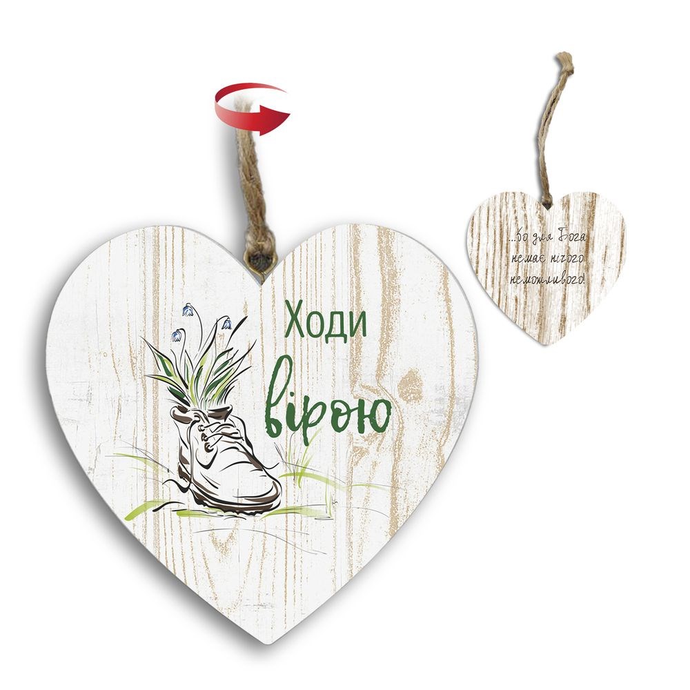 Підвіска-серце двостороння "Ходи вірою/Бо немає нічого неможливого"