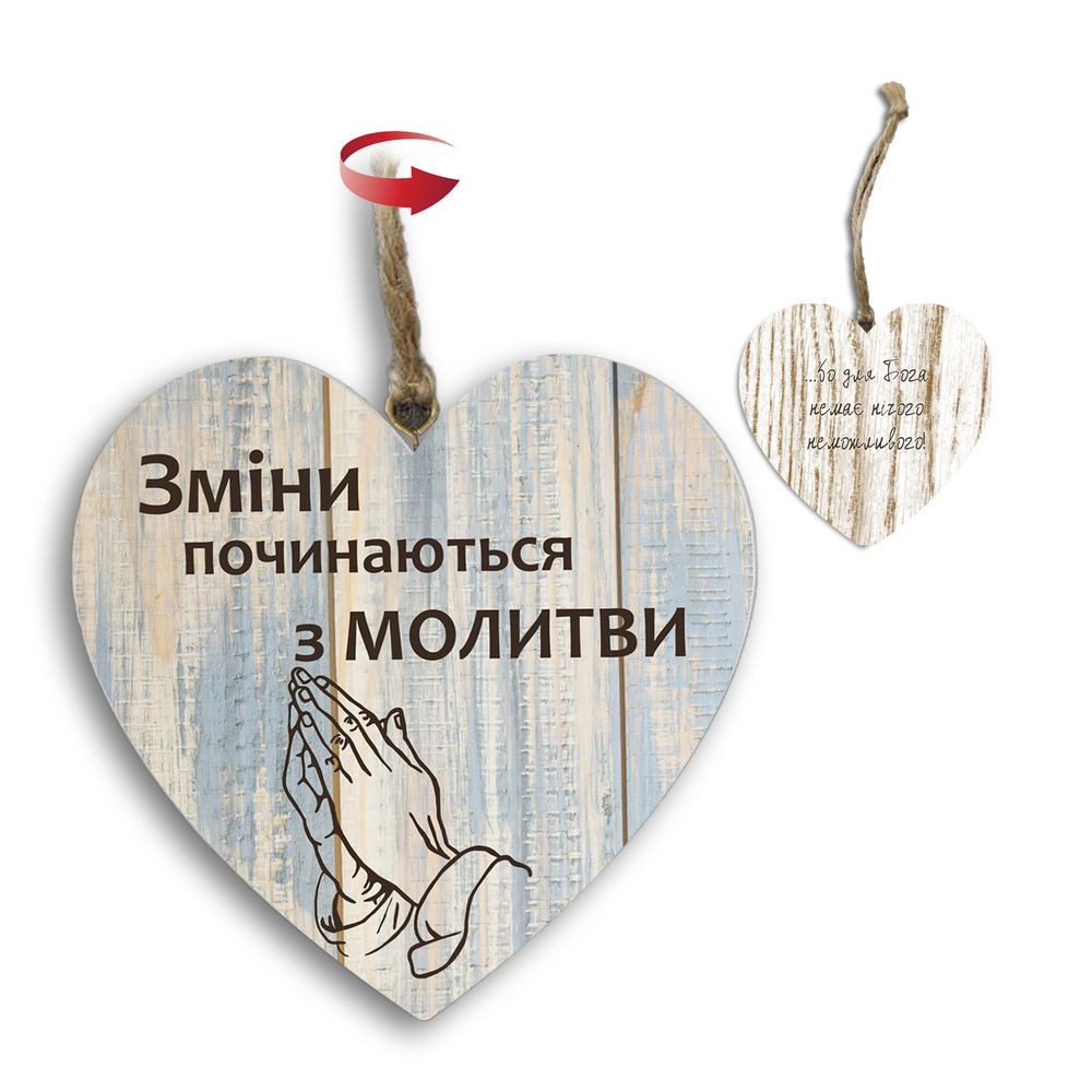 Підвіска-серце двостороння "Зміни починаються з молитви/Бо немає нічого неможливого"