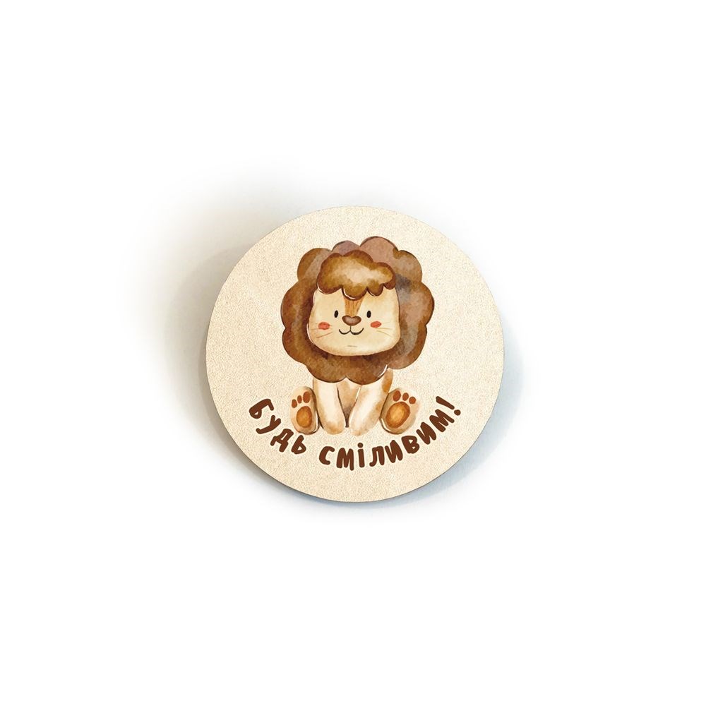 Значок дерев'яний "Будь сміливим (лев)" Ф4 см