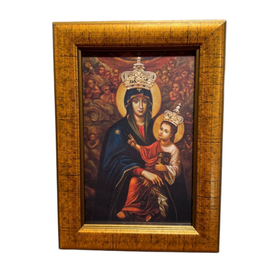 Бердичівська ікона Матері Божої — один із найшанованіших чудотворних образів України, що прославився численними випадками зцілень та небесного заступництва. Цей образ надруковано на високоякісному фотопапері, що відтворює духовну глибину та красу оригінального образу. Завдяки сучасним технологіям друку, зображення зберігає яскравість фарб, чіткість деталей і благородний вигляд, наближений до класичного живопису.