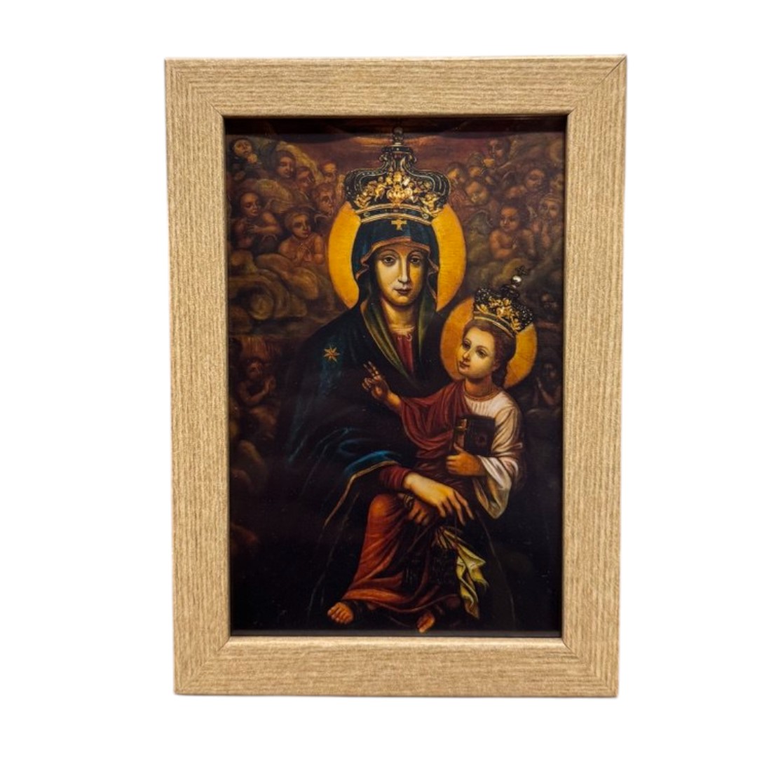 Бердичівська ікона Матері Божої — один із найшанованіших чудотворних образів України, що прославився численними випадками зцілень та небесного заступництва. Цей образ надруковано на високоякісному фотопапері, що відтворює духовну глибину та красу оригінального образу. Завдяки сучасним технологіям друку, зображення зберігає яскравість фарб, чіткість деталей і благородний вигляд, наближений до класичного живопису.