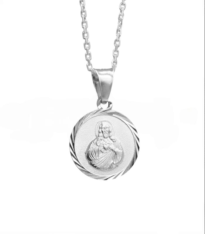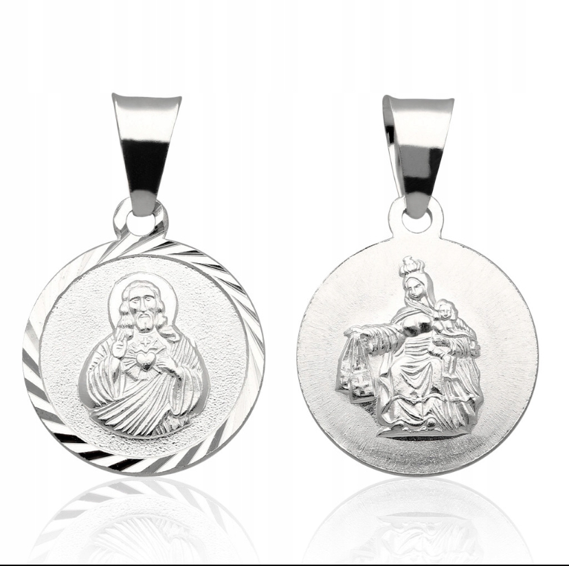 Срібний медальйон із зображенням Матері Божої з Гори Кармель (Скапулярної) — символ посвяти Богородиці та духовного захисту. Цей медальйон є особливим знаком віри, натхнення і опіки Пресвятої Діви Марії. Двосторонній.