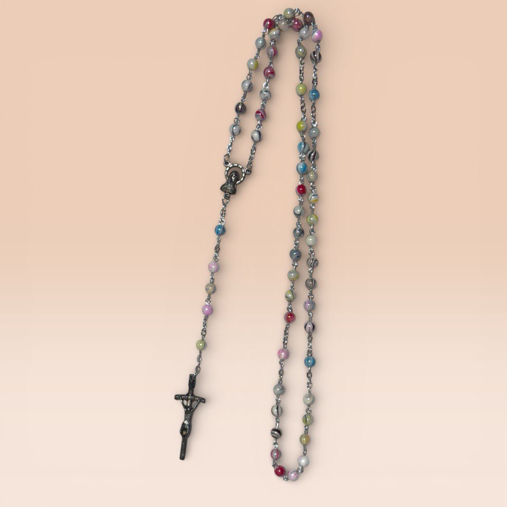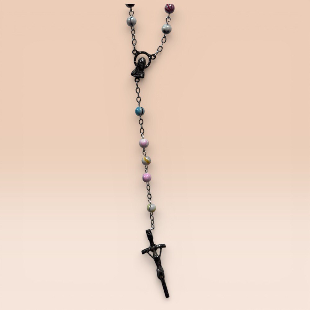 Розарій з різнокольорових намистинок — яскравий та стильний молитовний атрибут для щоденної молитви. Легкий та зручний у використанні, він підійде для дому, храму або як духовний подарунок.