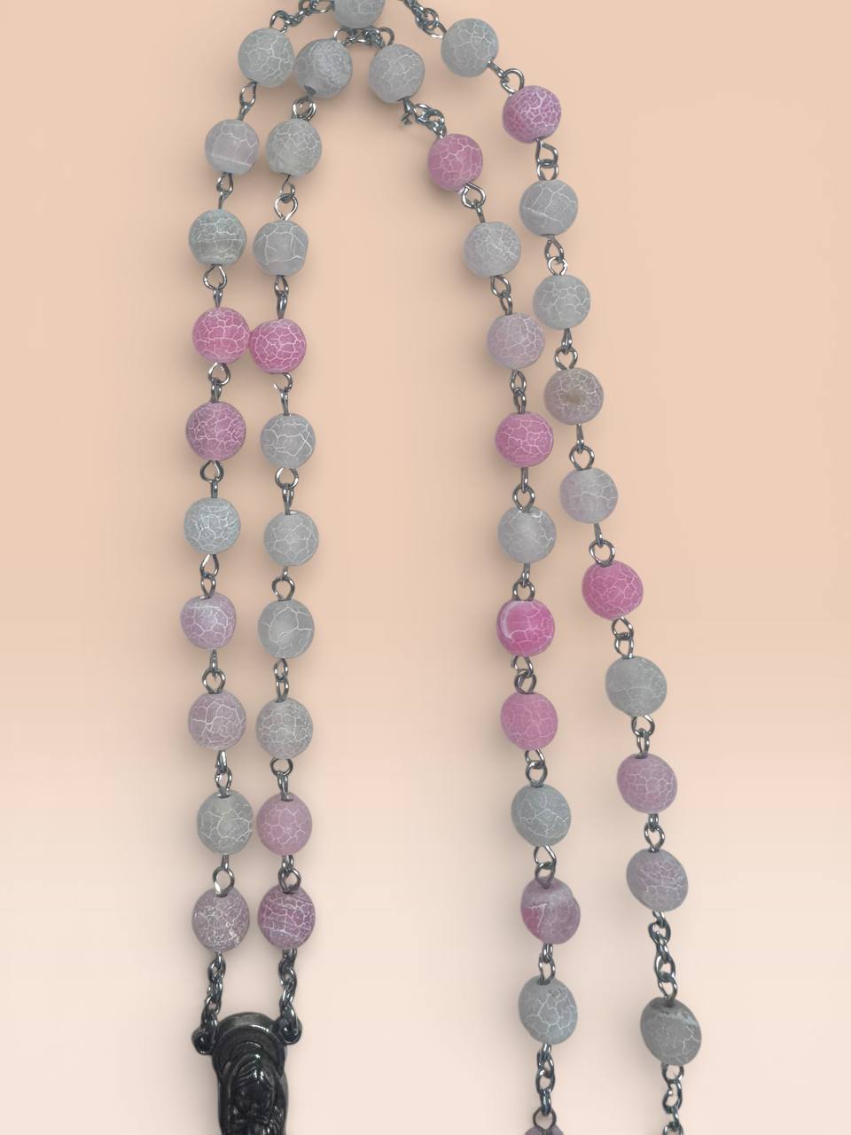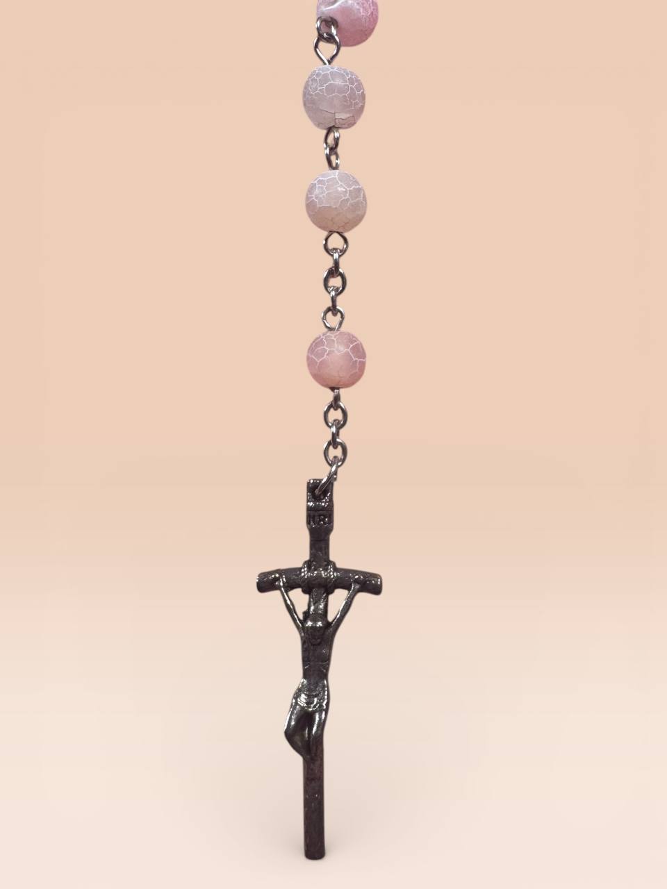 Розарій з морозного каміння – рожевого агату має ніжний пастельний відтінок та матову фактуру, що надає йому витонченого вигляду. Натуральні камінці приємні на дотик і зручні для щоденної молитви. Чудово підходить для дому, храму або як особливий духовний подарунок.