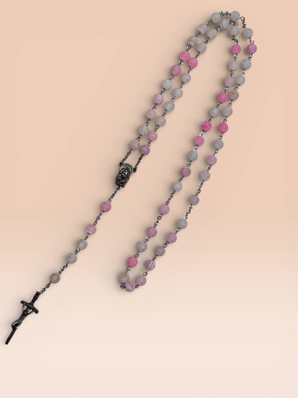 Розарій з морозного каміння - рожевий агат, 8 мм
