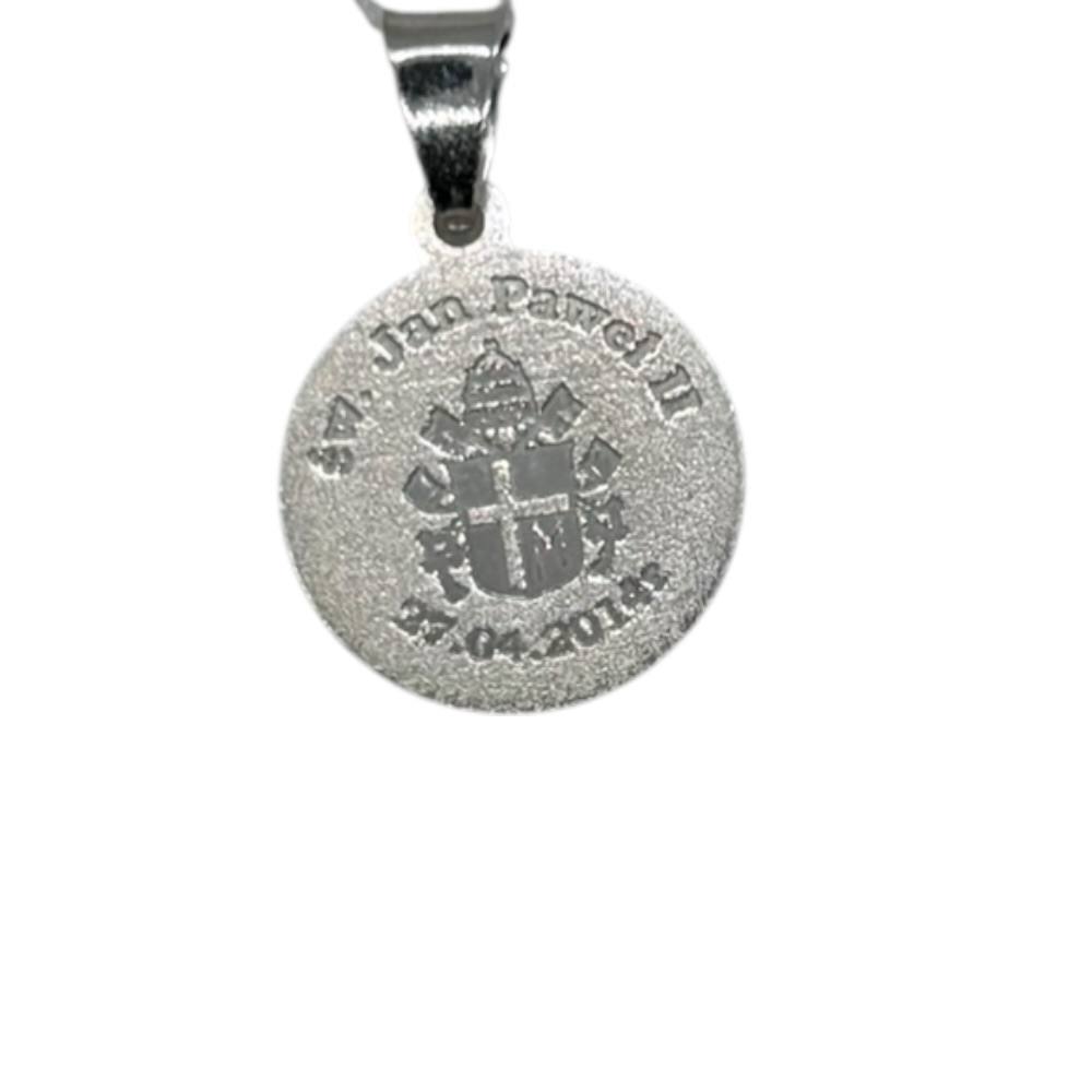 Срібний медальйон із зображенням Іван Павло ІІ — символ віри, мужності та духовного лідерства. Святий Папа Іван Павло ІІ надихає прикладом любові до Бога і людей, відданості служінню та захисту людської гідності.
