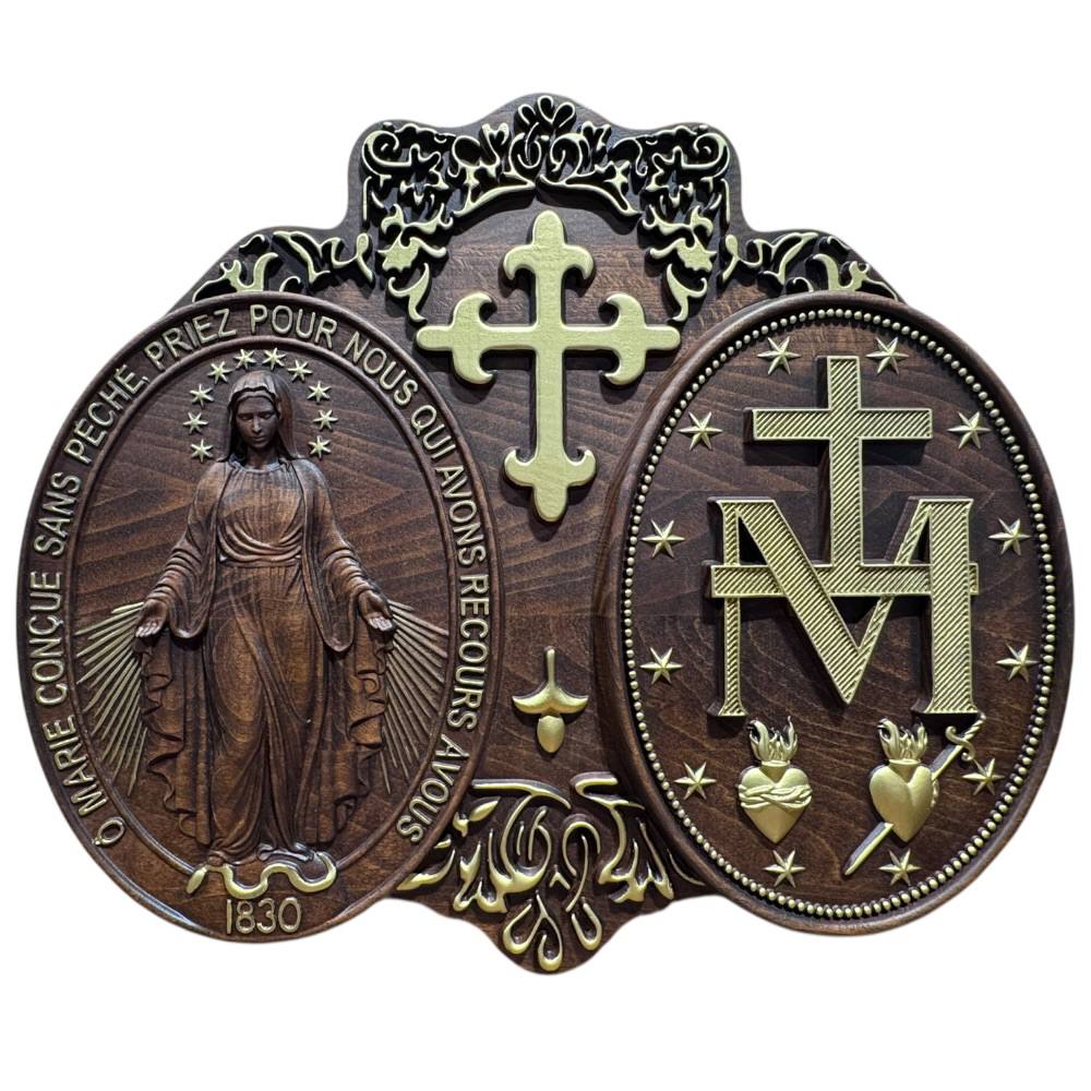 Витончена дерев’яна плакетка, виконана методом машинної різьби, із зображенням Чудотворний медальйон Матері Божої. Деталізоване різьблення підкреслює глибину символіки та надає виробу особливої духовної виразності.