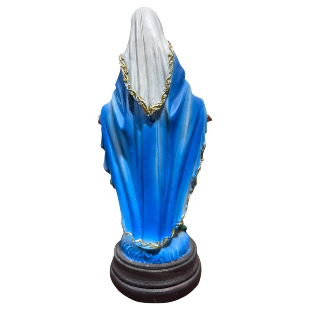 Фігура із зображенням Непорочне Зачаття Пресвятої Діви Марії передає традиційний образ Пресвятої Діви Марії у світлому вбранні, з руками, складеними в молитві або лагідно опущеними. Образ символізує чистоту, благодать і особливе покликання Марії в Божому задумі спасіння.