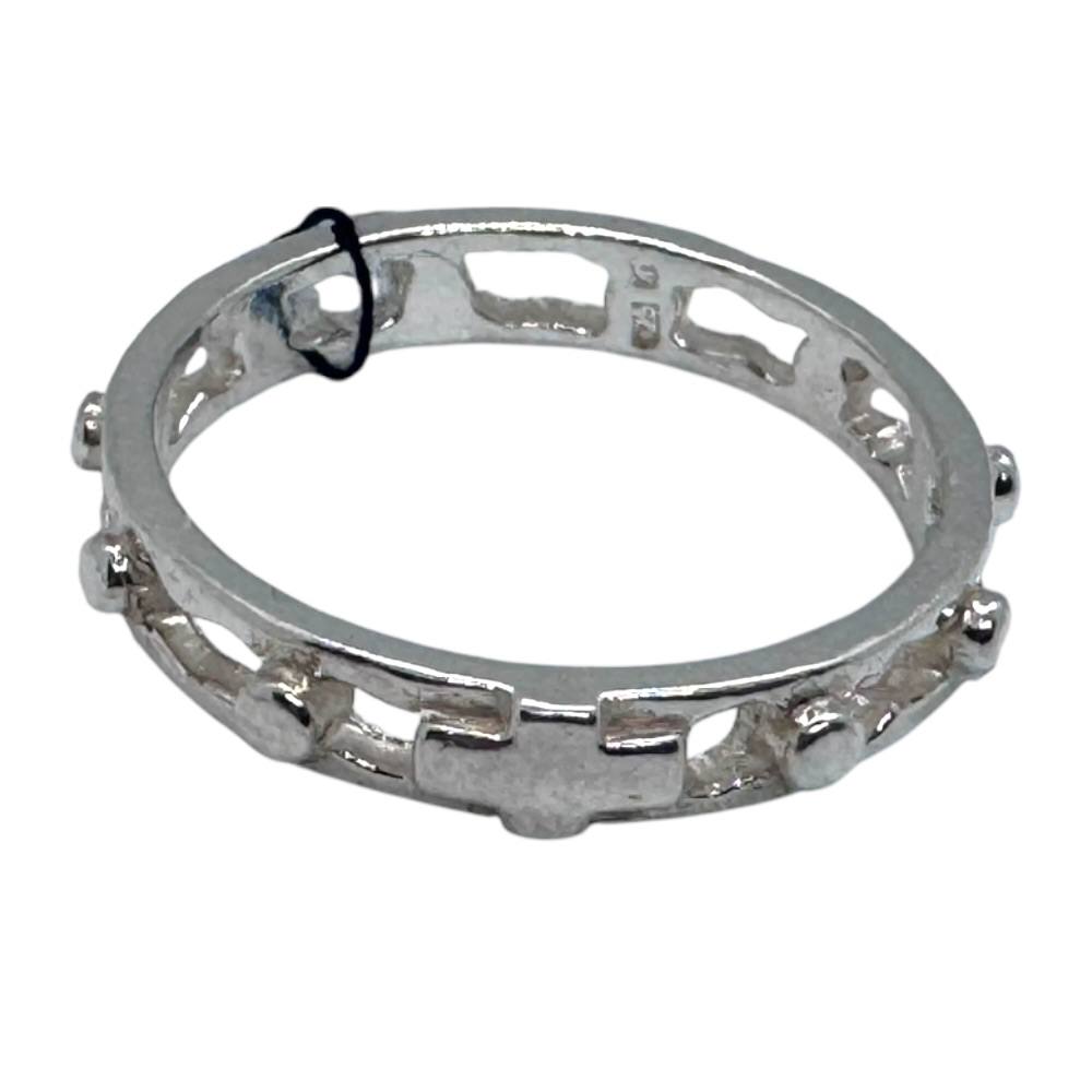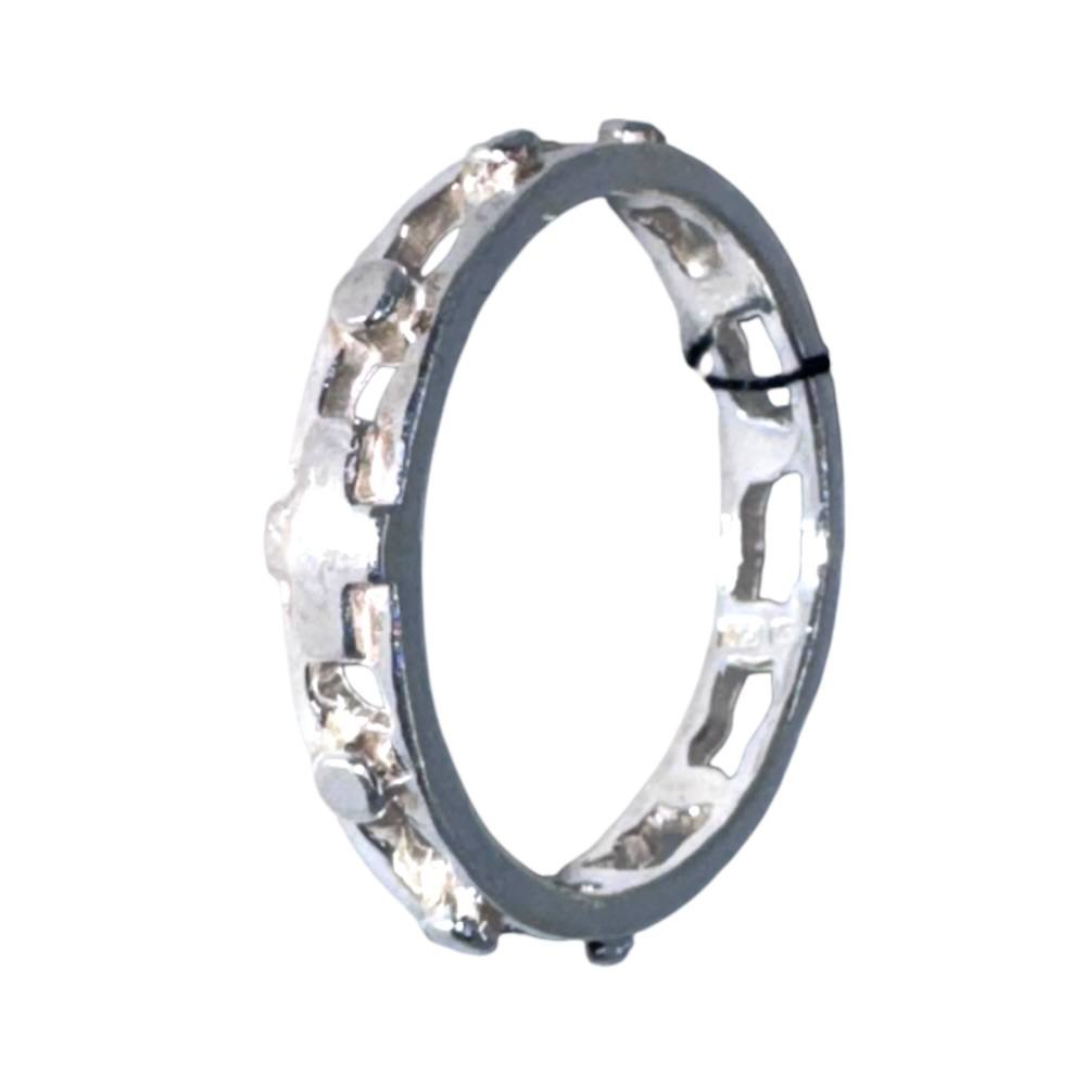 Срібний розарій-десятка на палець — компактний і зручний аксесуар для щоденної молитви. Виконаний у формі кільця з десятьма намистинами та хрестиком, він дозволяє молитися Розарій у будь-якому місці.