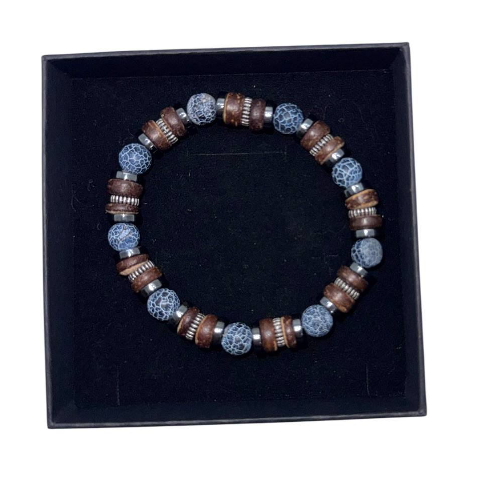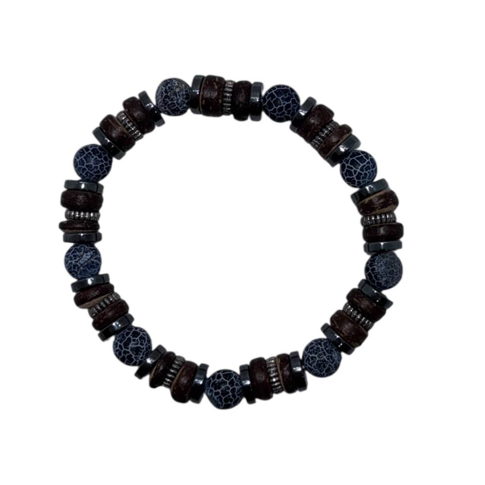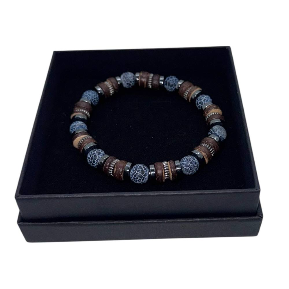 Браслет виготовлений із поєднання натурального агату та гематиту з намистинами діаметром 8 мм. Обробка «Іній» надає камінню матового, злегка морозного ефекту, що підкреслює текстуру та глибину природних відтінків.