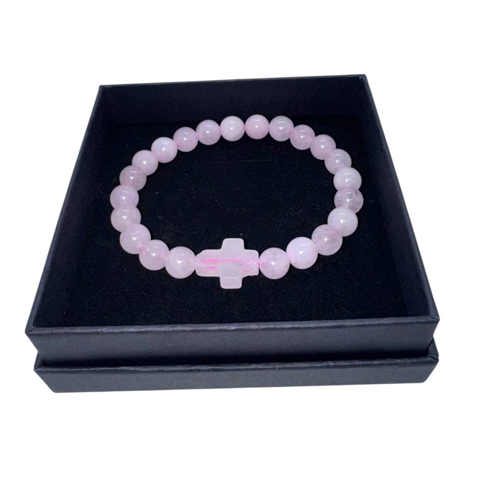 Браслет з натурального каміння, Рожевий Кварц ( обробка глянець ), 8 мм