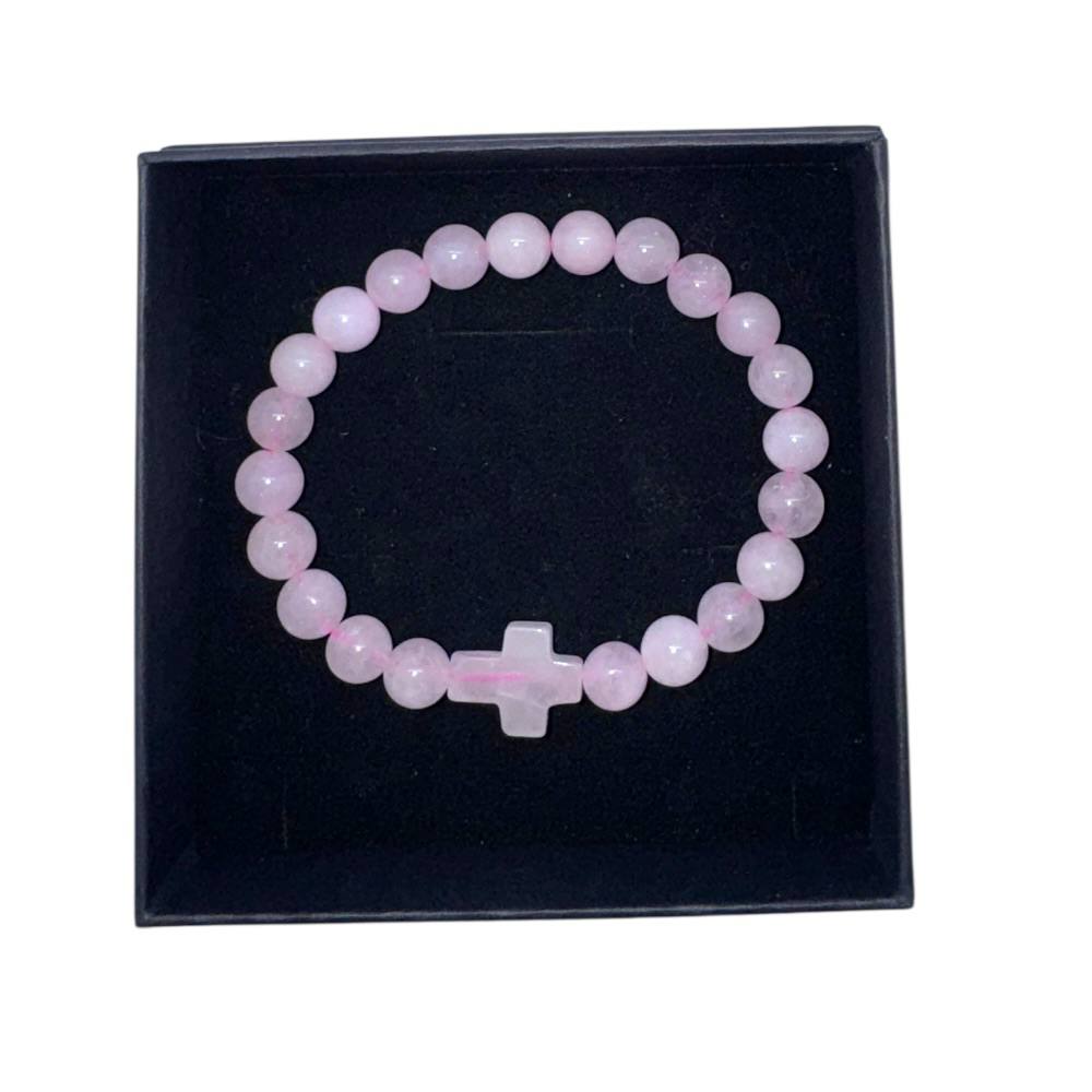 Браслет виготовлений із натурального рожевого кварцу з намистинами діаметром 8 мм. Глянцева обробка підкреслює ніжний відтінок каменю та надає йому делікатного блиску.