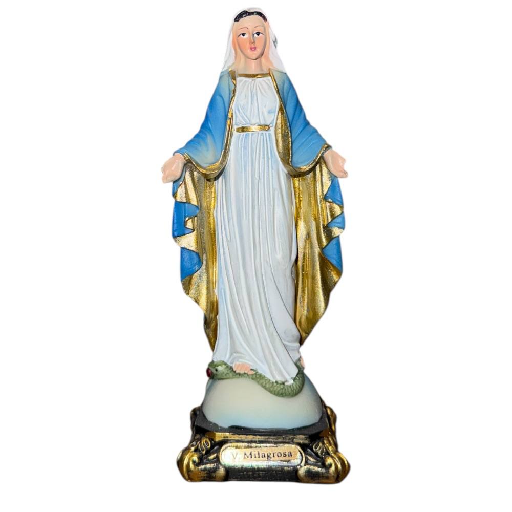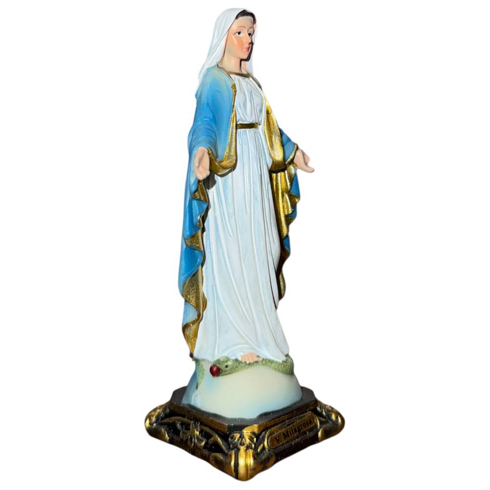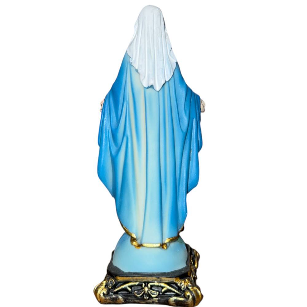 Фігура із зображенням Непорочне Зачаття Пресвятої Діви Марії передає традиційний образ Пресвятої Діви Марії у світлому вбранні, з руками, складеними в молитві або лагідно опущеними. Образ символізує чистоту, благодать і особливе покликання Марії в Божому задумі спасіння.