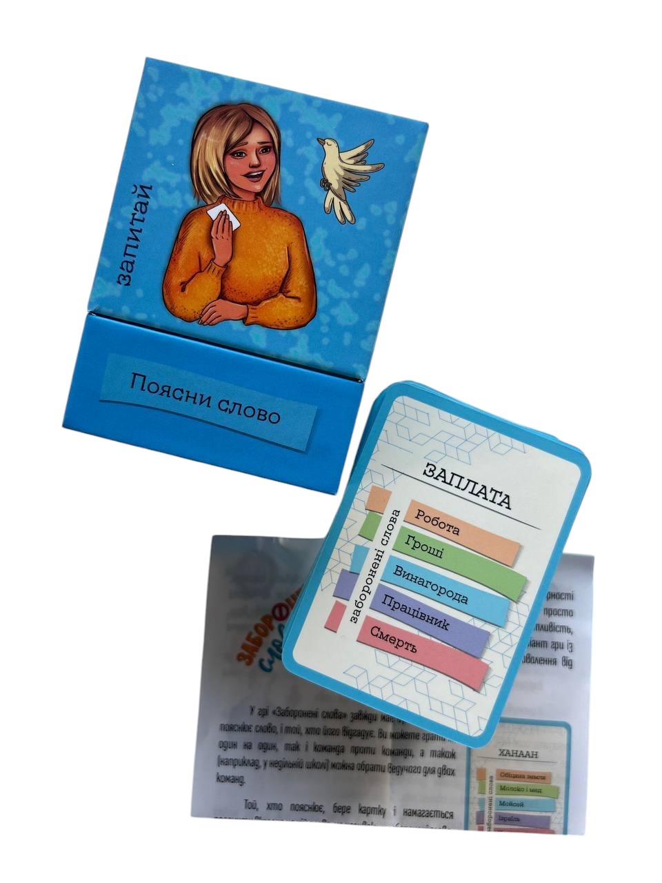 "Заборонені слова" — це захоплююча християнська настільна гра, яка допоможе вам весело та пізнавально провести час у колі друзів чи сім'ї. Мета гри полягає у тому, щоб пояснити слово, не використовуючи при цьому певні заборонені слова, які найбільш асоціюються з цим словом.